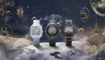 The first exquisite Rado model from the Master of Materials’ star-studded festive catalogue, is the latest incarnation of the much-loved Captain Cook, with case and bracelet in matt-black high-tech ceramic and a stainless-steel bezel and crown finished in warm PVD rose-gold shade. Rugged and sporty, this release also wears the iconic box-shaped sapphire crystal, this time over a softly smoke-tinted skeletonised dial. The breathtaking, open design provides an unobstructed view of the R808 movement and its superb contrasts, Côtes-de-Genève decoration and 25 jewels. Just imagine! Those marvellous workings can sing their special holiday song with absolute reliability and accuracy, for up to 80 hours, unattended.