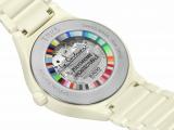 The reverse of all three watches features 63 digitally printed colour strips – representing the full spectrum of the Polychromie Architectural. They encircle the view of the Rado calibre R763 automatic movement within, which can be seen through a flat sapphire crystal that features the logo of Le Corbusier at its centre. The colour strips also decorate the presentation box each watch is supplied in.